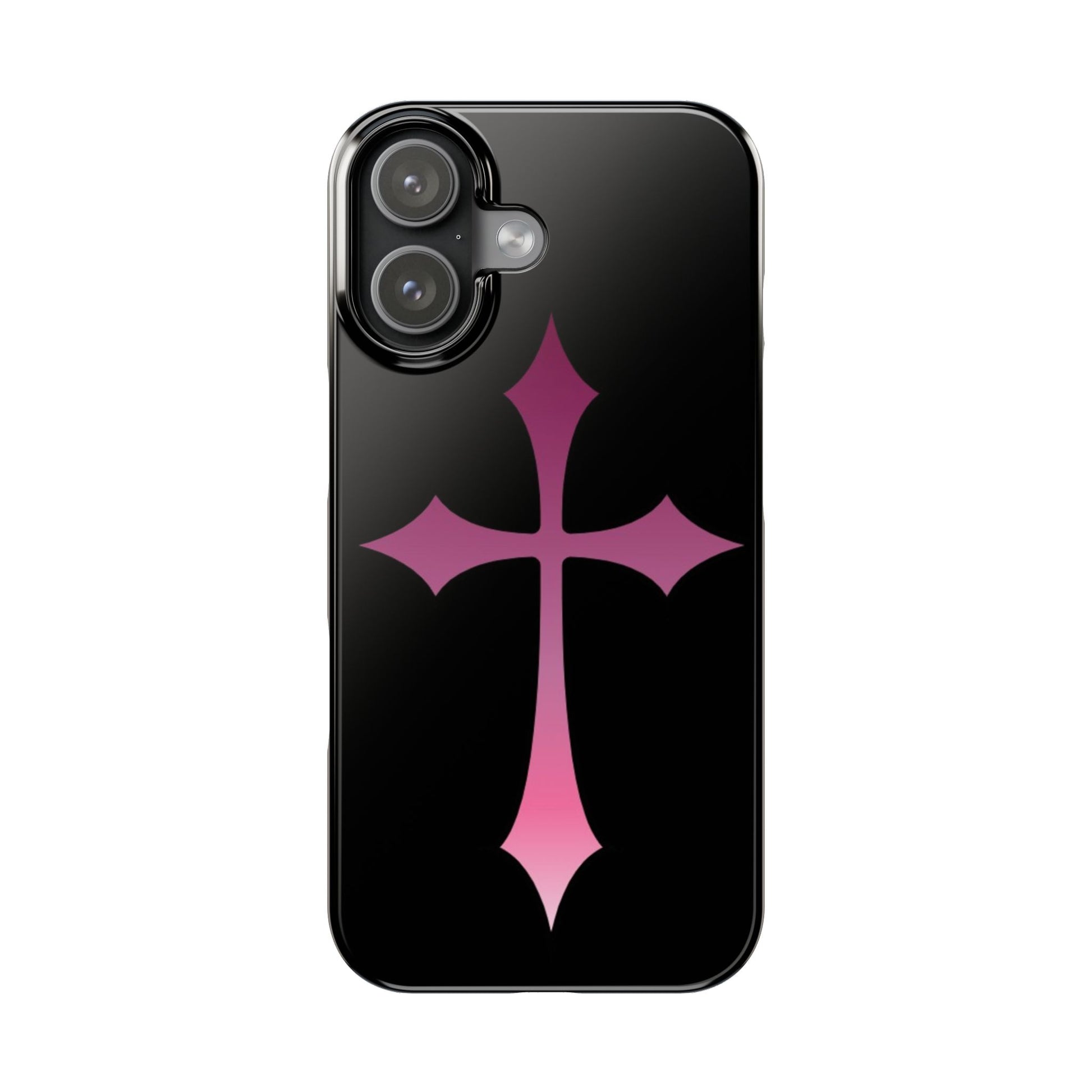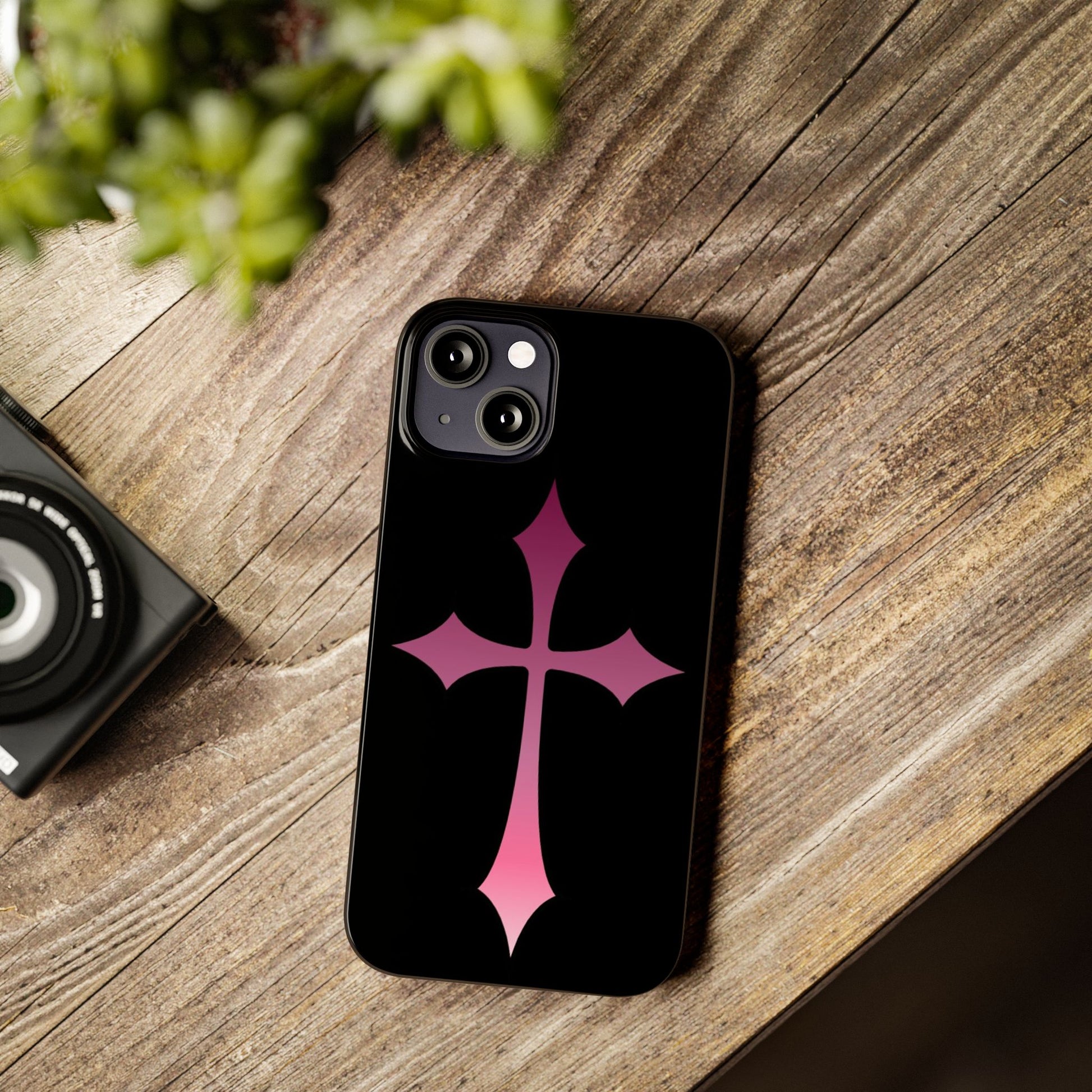 This Gothic Cross Slim Phone Case is a trendy and unique phone protector, perfect for teens and those who love stylish accessories. It makes a great birthday gift and is ideal for everyday use. The glossy surface and slim form give off a modern and fashionable vibe, while the durable material provides excellent protection for your phone. This phone case is relevant for occasions like birthdays and is targeted towards teens and young adults.