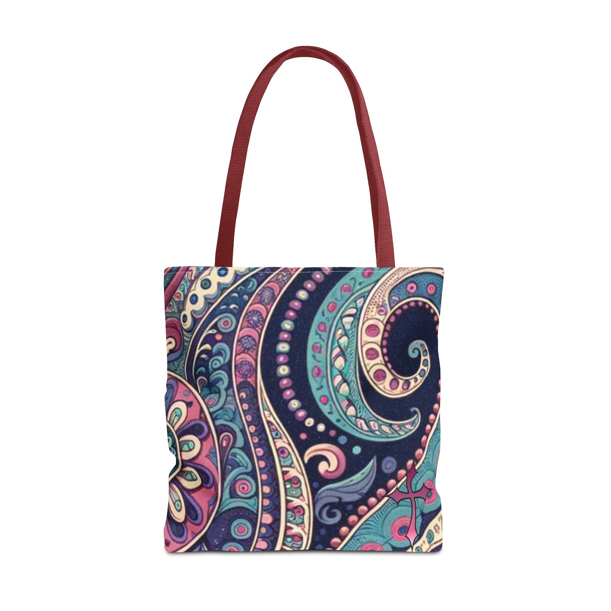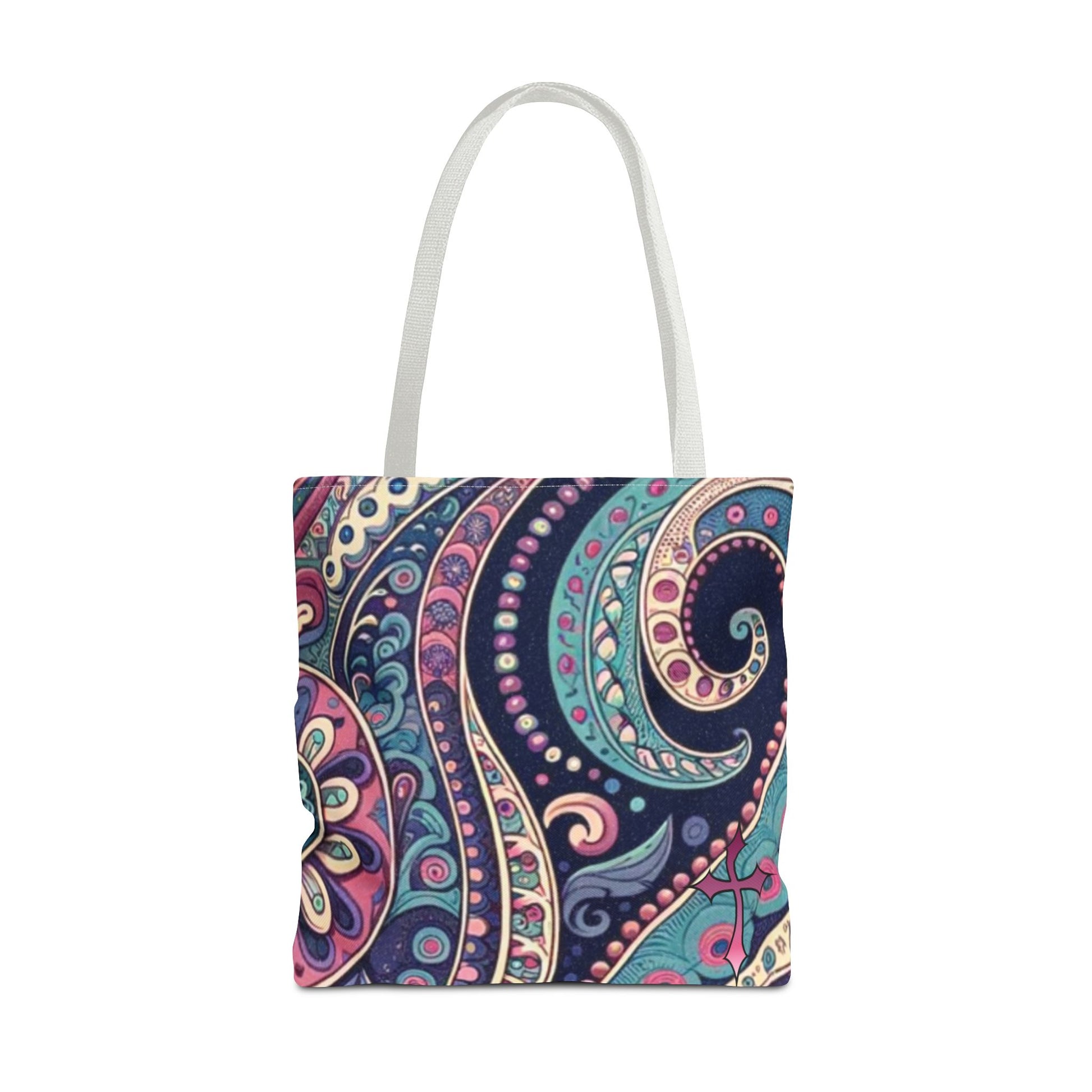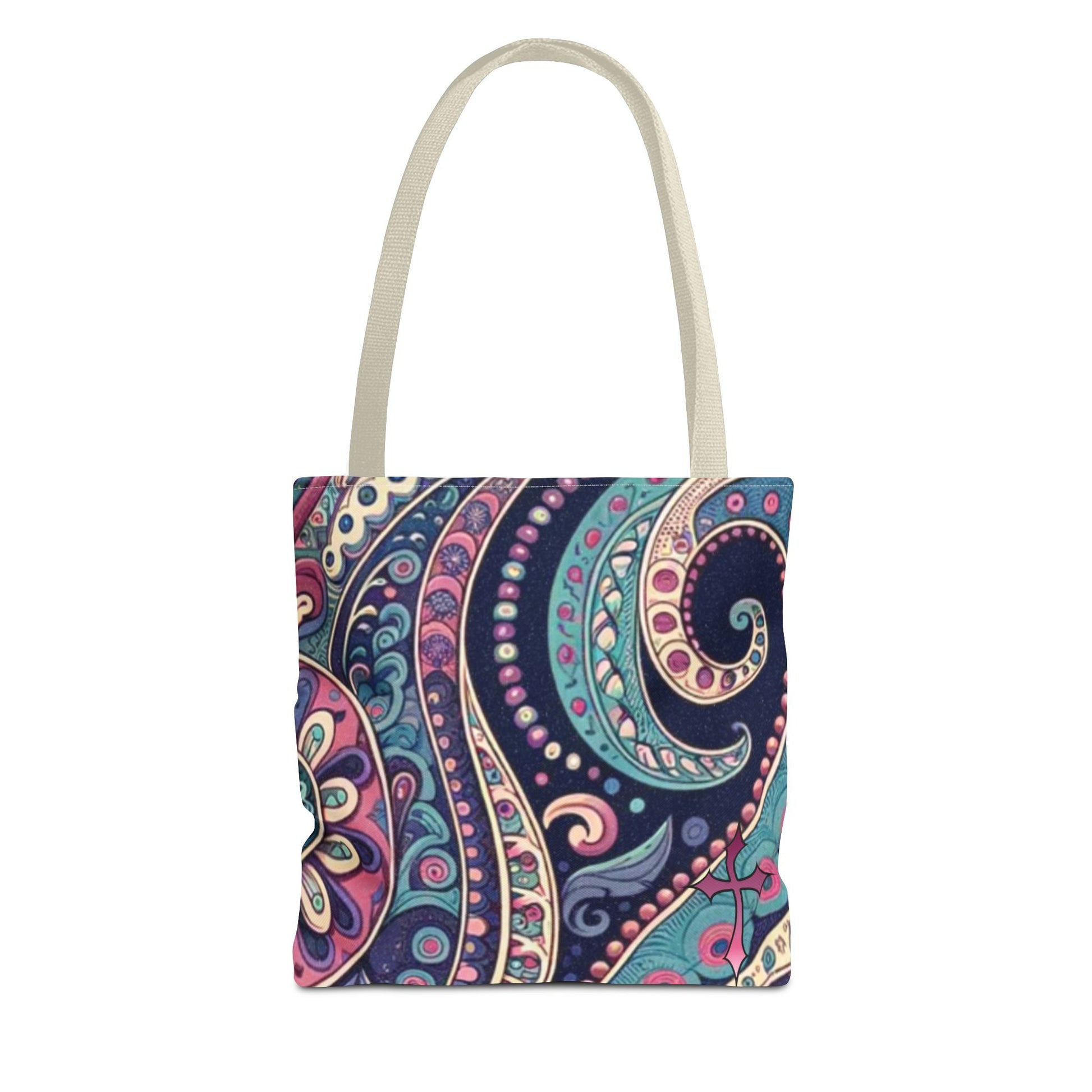 This Paisley Tote Bag with Faith design in Blue gives a bohemian and spiritual vibe. Perfect for those who appreciate unique patterns and want to carry their belongings in style. Ideal for everyday use, shopping, or as a thoughtful gift for friends or family. Relevant for spiritual holidays or occasions.